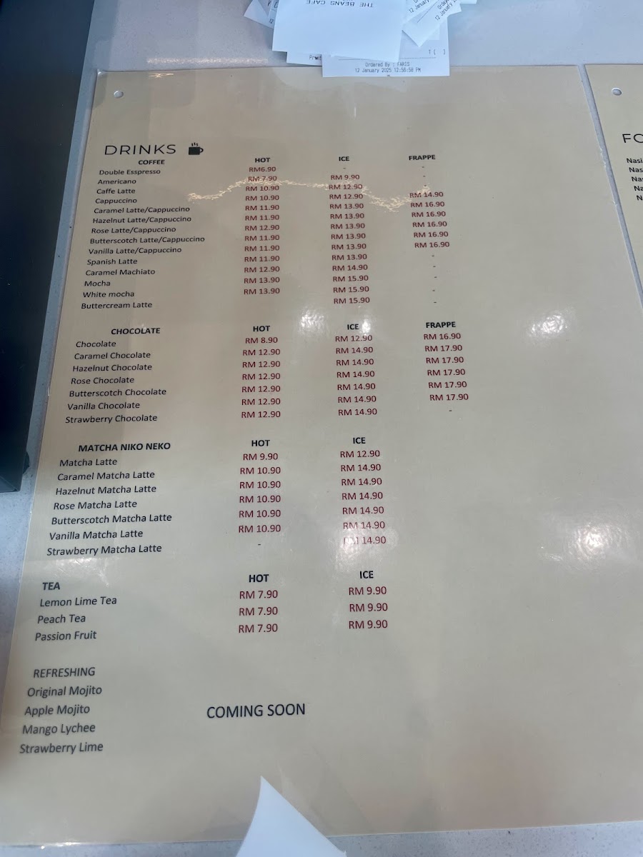 THE BEANS CAFE Menu